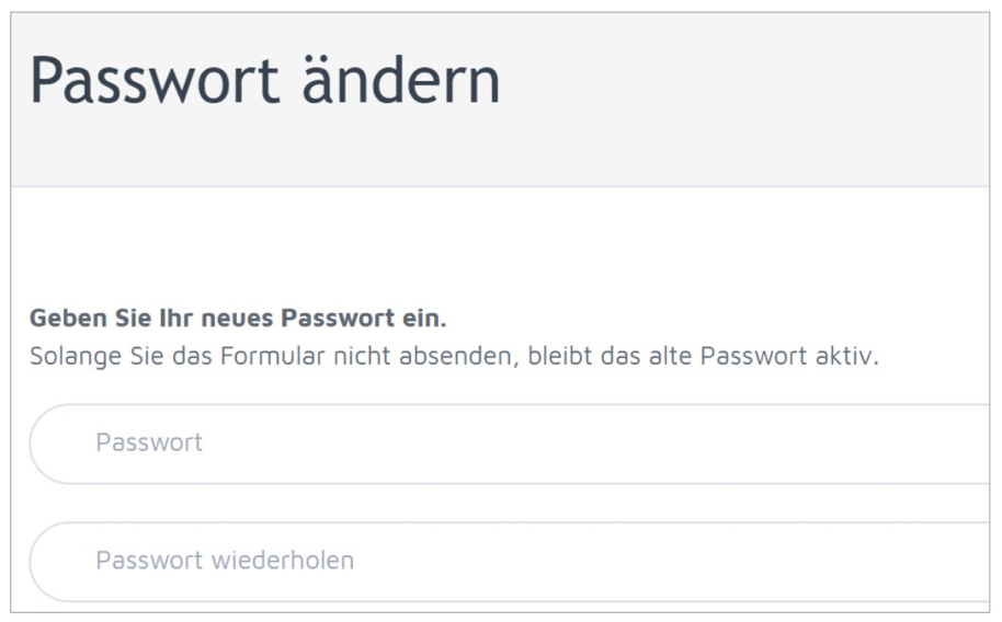 7. Wenn die korrekte E-Mail-Adresse eingegeben wurde, wird vom System eine E-Mail mit einem Link verschickt. Wenn man auf diesen Link klickt kommt man zu dem nachfolgend abgebildeten Fenster und kann ein neues Passwort erstellen. Bitte auch den SPAM-Ordner überprüfen!